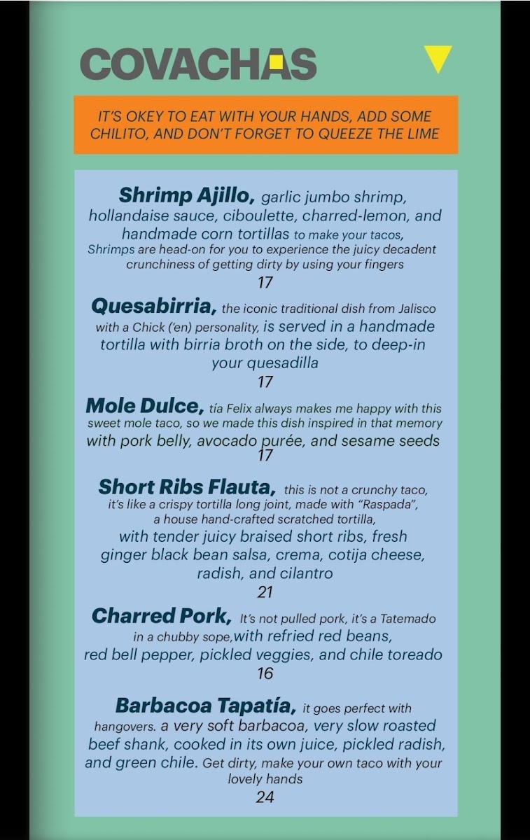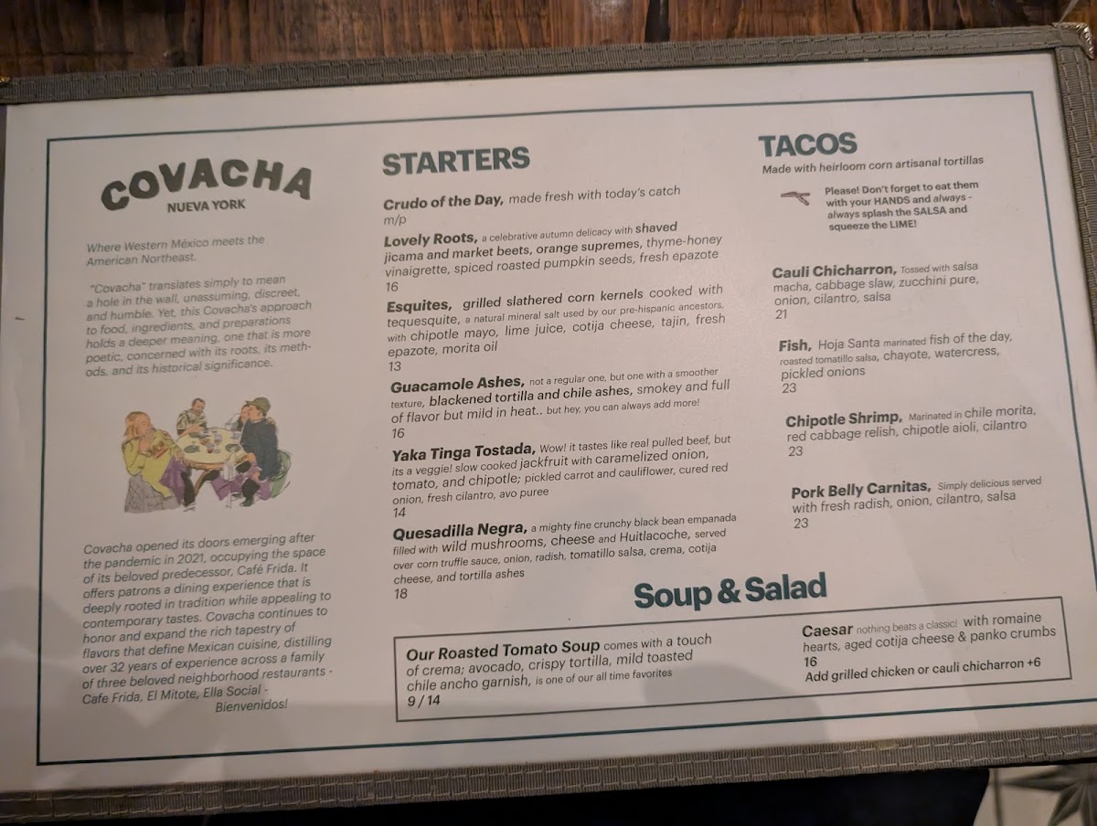 If you find yourself near 368 Columbus Ave in New York City, the first thing you’ll want to explore is the Covacha Menu. It reads like a love letter to coastal Mexican flavors, layered with bold spices, fresh herbs, and just the right amount of heat. You’ll spot vibrant ceviches that taste like they were pulled straight from the ocean that morning, tacos tucked into warm tortillas with rich, slow-cooked fillings, and small plates that are perfect for sharing but tempting enough to keep to yourself.