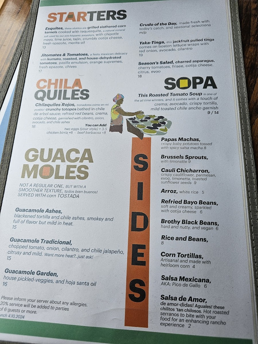 is one of mi abuelita’s favorite recipes, and it comes with a touch of crema; avocado, crispy tortilla, and chile ancho garnish Cup 9 / Bowl 14